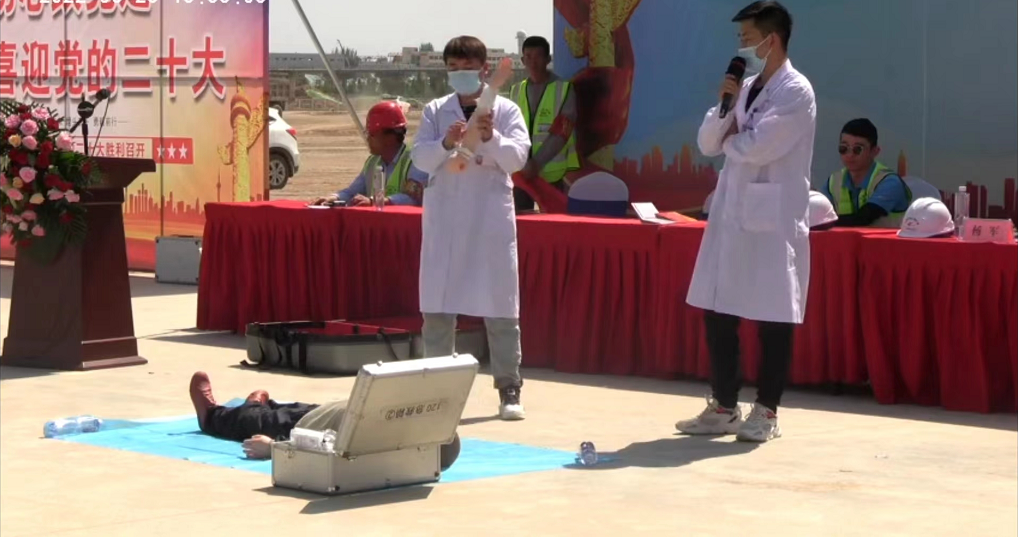 此次演練模擬項目現場駐地宿舍發生電器火災,項目部立即啟動應急預案,救援組第一時間撥打消防救援電話,組織人員有序撤離到安全區域。參演人員均嚴肅對待,過程規范迅速,演練活動順利完成。演練結束后,項目部組織開展了消防急救培訓,包含項目職工使用干粉滅火器進行滅火操作,對模擬假人進行心肺復蘇等。